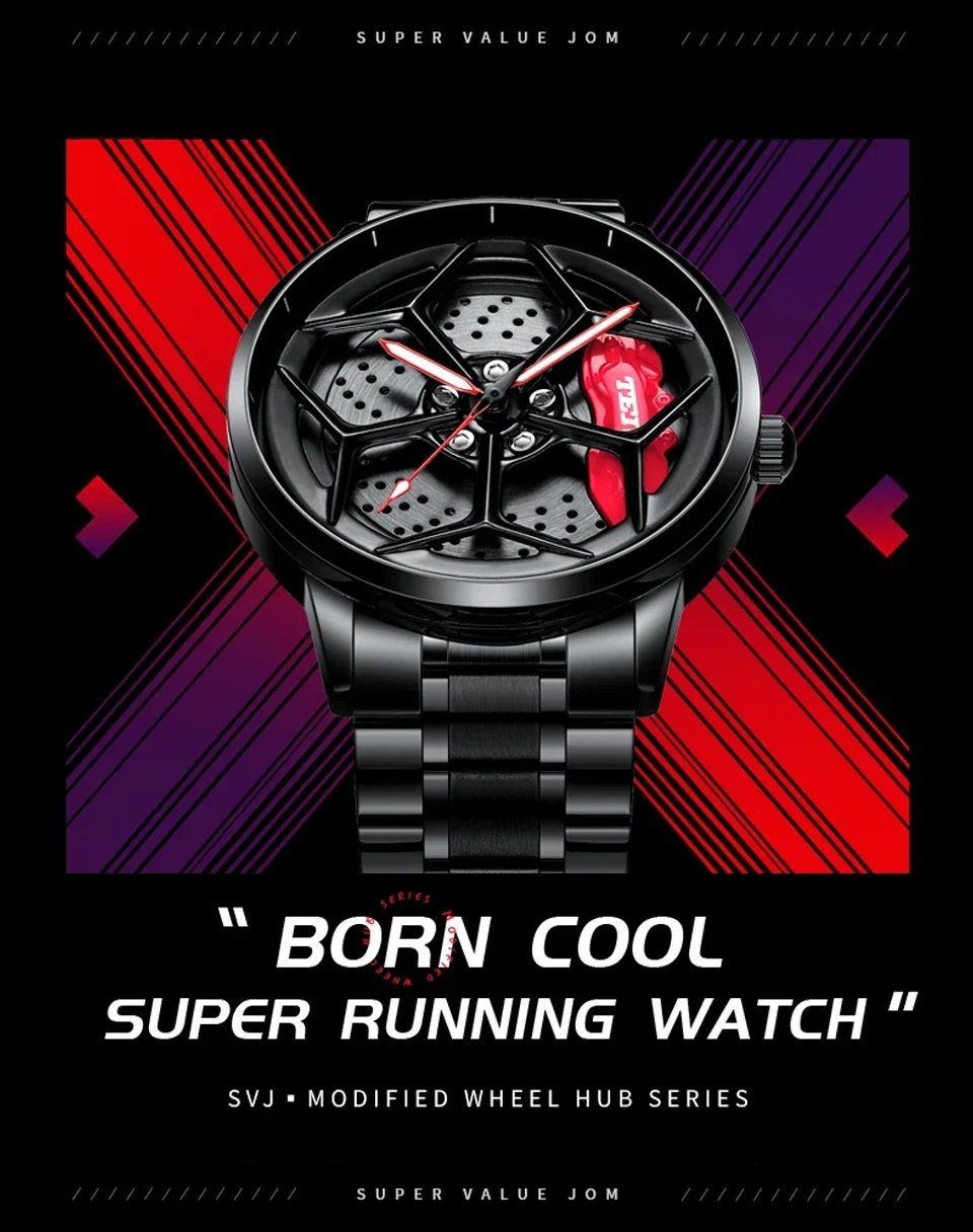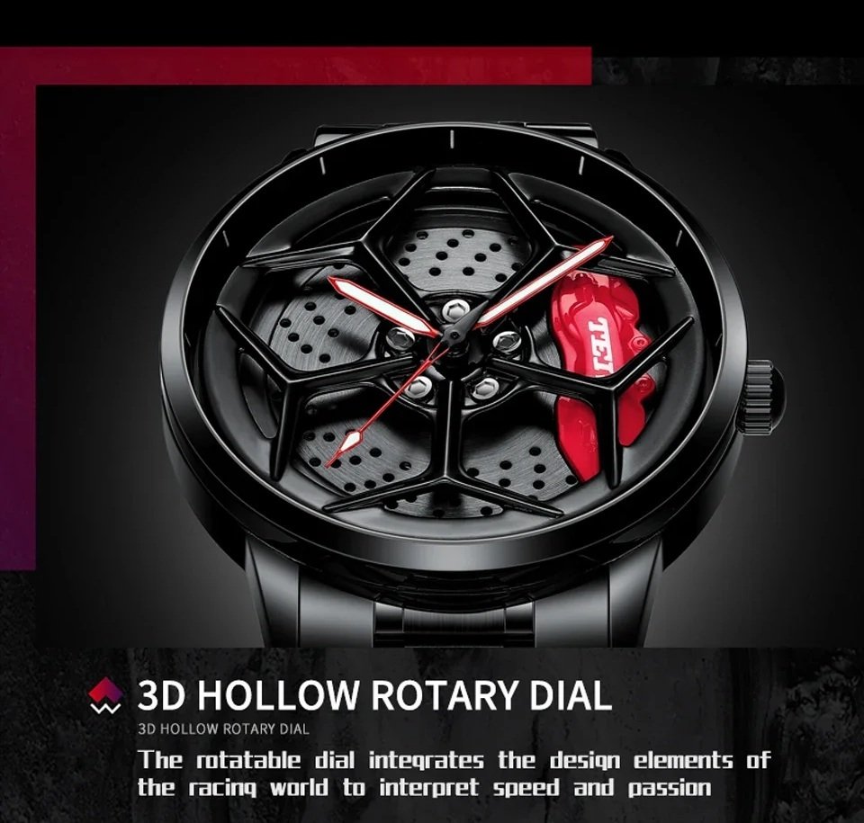Unleash your passion for speed and style with this bold, automotive-inspired timepiece. Engineered for performance and designed to turn heads, this men’s luxury watch features a 3D hollow dial modeled after a high-performance car wheel hub—complete with brake disc detailing and caliper accents. Whether you’re on the road or off the grid, this watch delivers precision, durability, and undeniable presence.