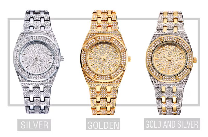 - Dial: Large diamond-style centerpiece with full crystal embellishment