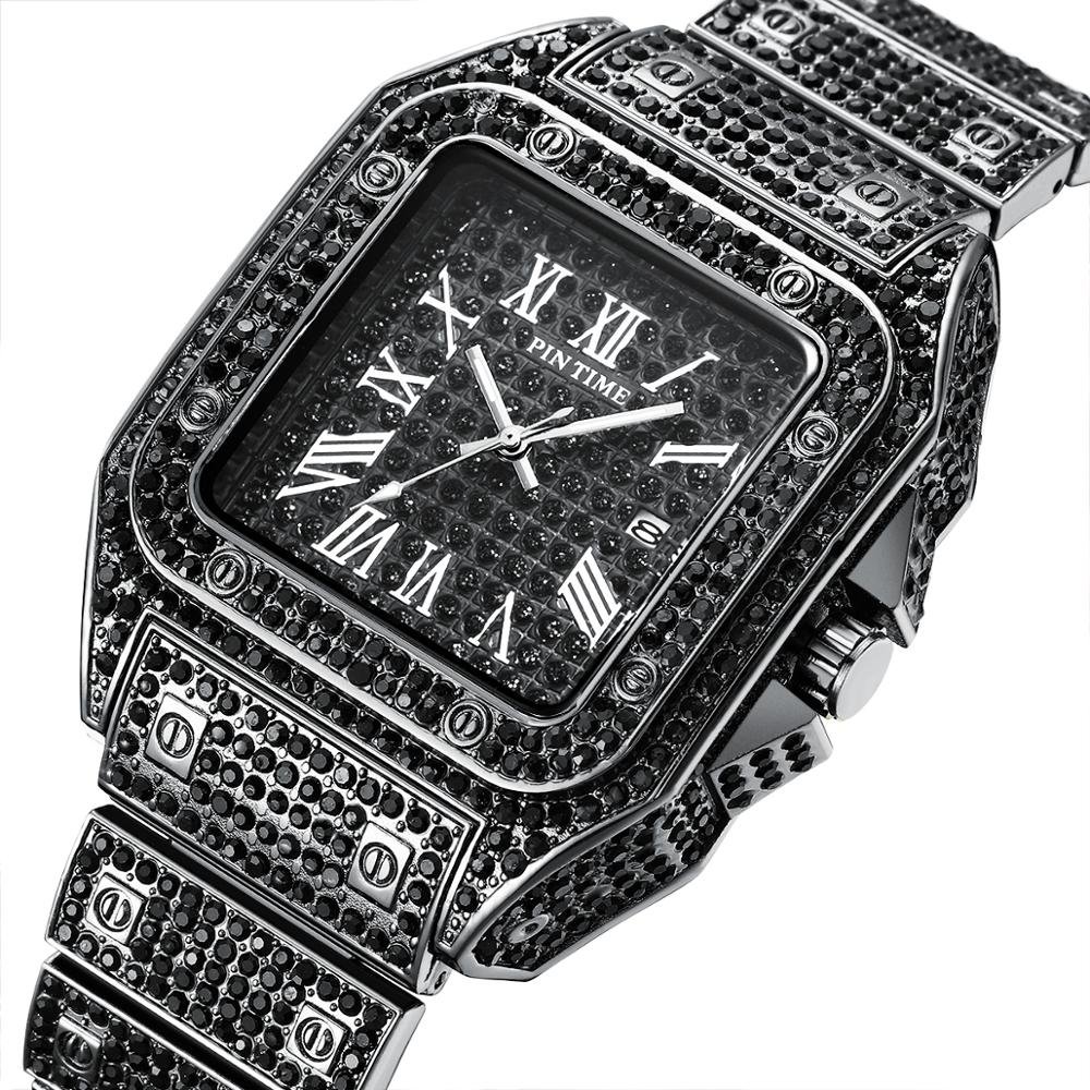 Turn heads with this bold, iced-out men’s wristwatch featuring a square gold-tone case, shimmering diamond-style accents, and a sleek Roman numeral dial. Crafted from durable stainless steel and powered by precision quartz movement, this timepiece blends hip-hop flair with luxury craftsmanship. Includes a functional calendar window and adjustable link bracelet for a custom fit. Perfect for streetwear enthusiasts, collectors, or anyone looking to elevate their wrist game with unapologetic style.
