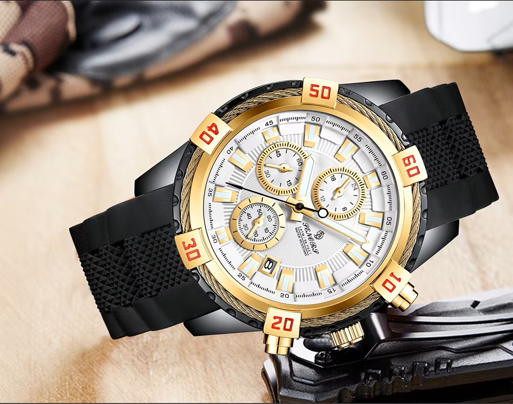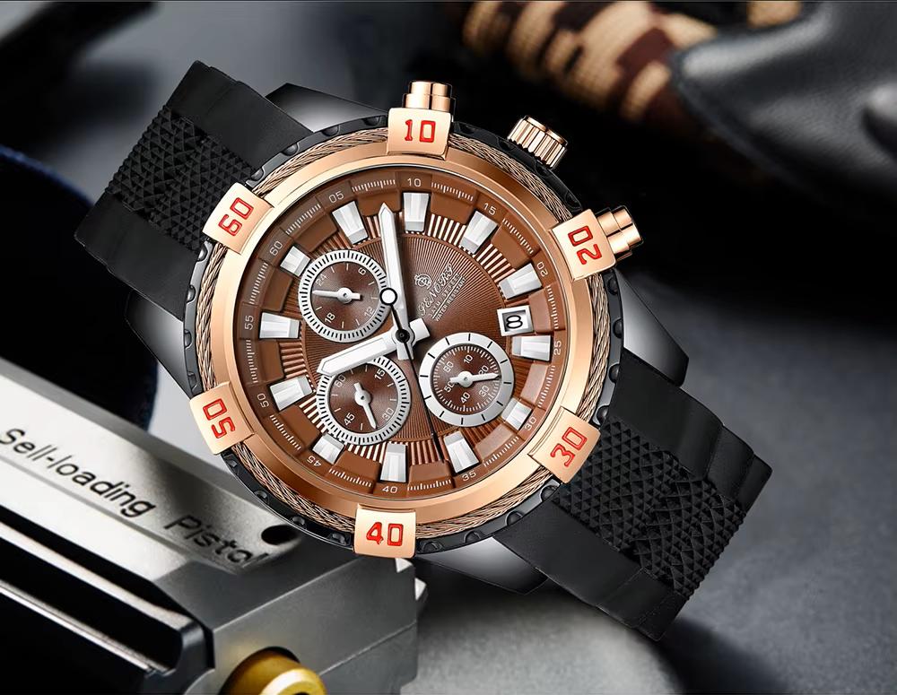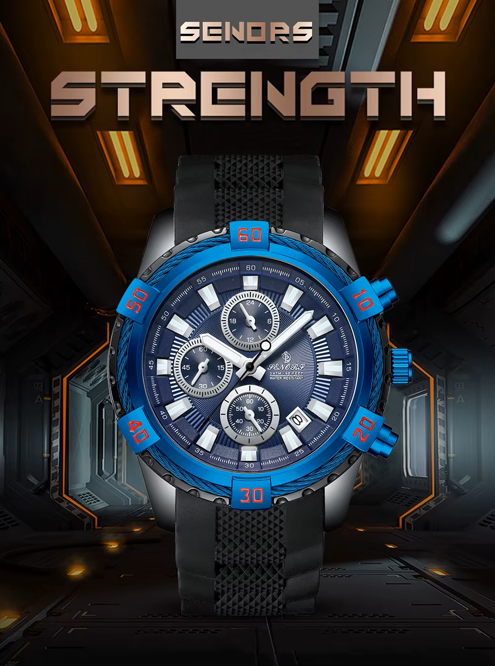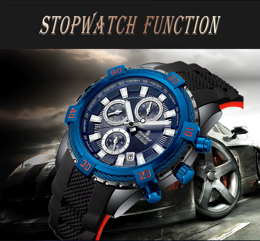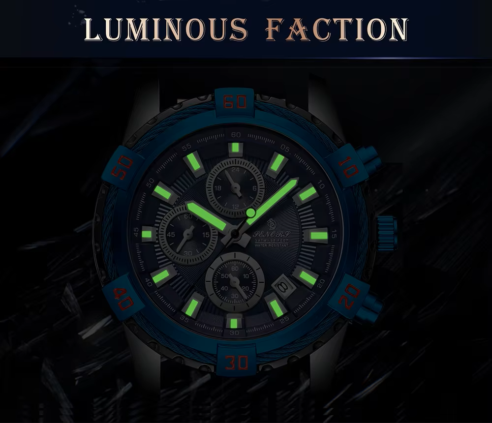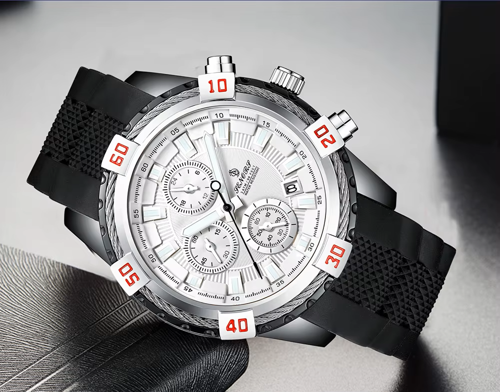 Crafted with a high-grade silicone strap for all-day comfort and a stainless steel case for lasting resilience, this watch is as functional as it is fashionable. Whether you’re navigating your day or pushing limits at the gym, the Senors Chronograph delivers strength, style, and reliability.